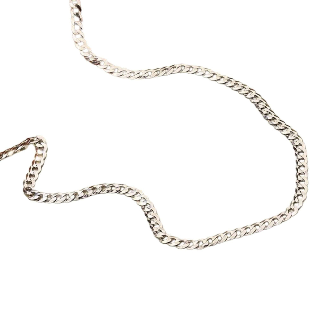 Silver Cuban link necklace with a width of 0.48 cm, offering a classic and versatile design. Easy to style for both casual and formal looks, it can be worn alone or layered with other chains.